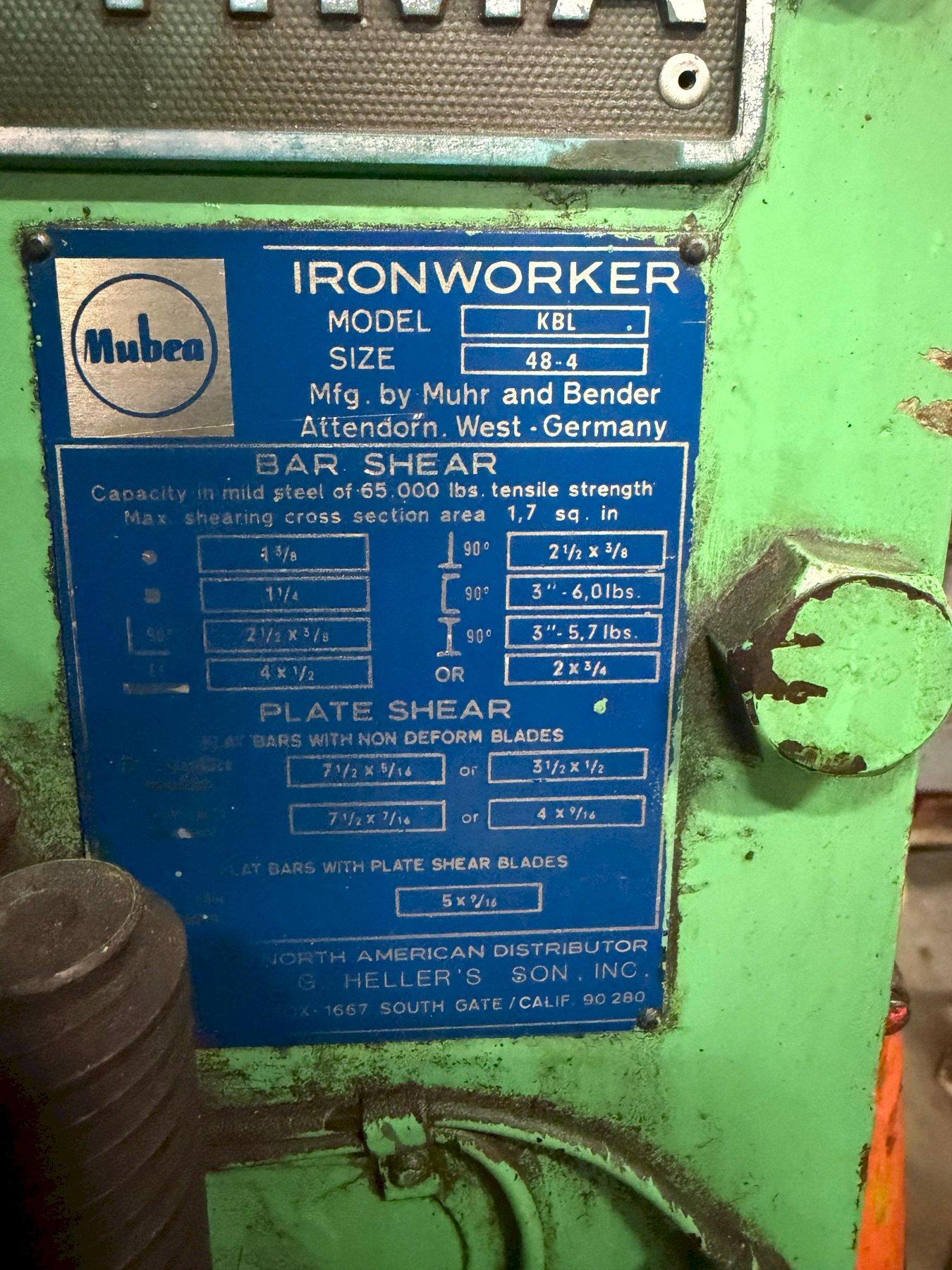1 - PREOWNED MUBEA MECHANICAL IRONWORKER, MODEL #: KBL48-4 OPTIMA, S/N: 131A/36371AF/24